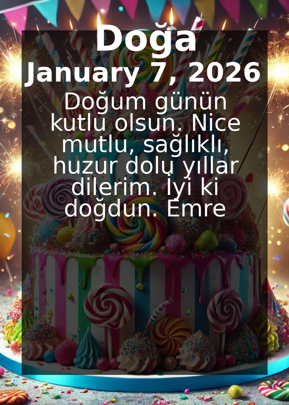Doğum günün kutlu olsun. Nice mutlu, sağlıklı, huzur dolu yıllar dilerim. İyi ki doğdun.