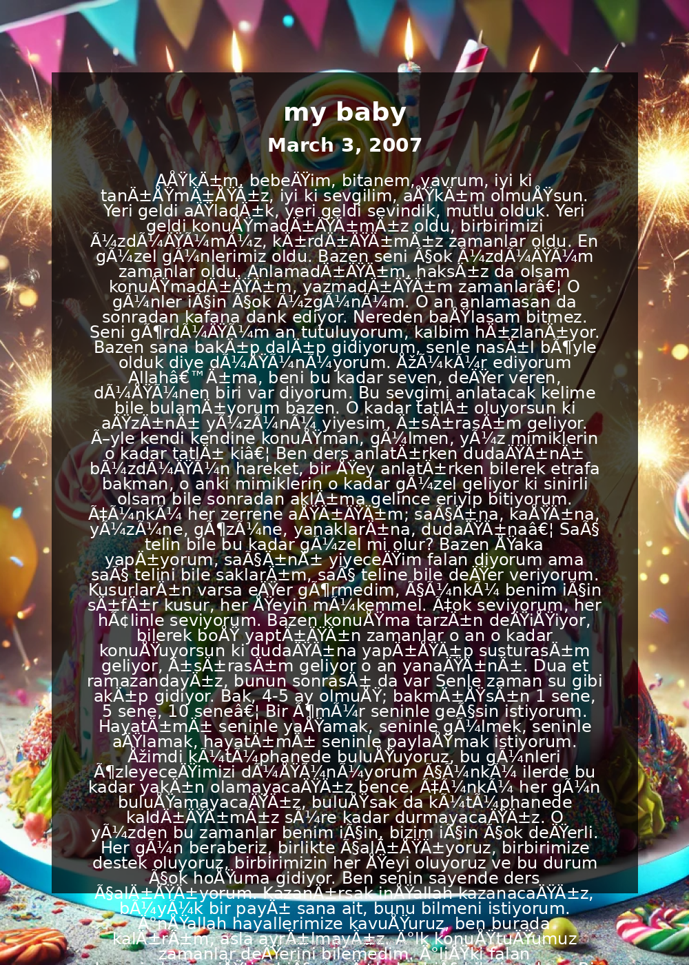 İlk konuştuğumuz zamanlar değerini bilemedim. İlişki falan deneyimlememiştim hiç, nasıl olur hiç bilmiyordum. Bir de çocuk gibiydim yani; hareketler, tavırlar… Çoğunlukla sana kötü davrandım, çocuk gibi hareketler yaptım, unutulmayacak hareketler yaptım, laflar söyledim. Ama şimdi gerçekten anlıyorum ve pişmanım. Bunu çok dile getirdim biliyorum. Öyle kolay bir konu değil, insan unutamıyor. Barışmaya, konuşmaya gelmeye bile çok utanıyordum o laflar yüzünden. Eskisi gibi oluruz diyordum çünkü ilerisini görmemiştim. Şimdi her gün daha ileri gidiyoruz. Sana çok değer veriyorum ve sana sahip olduğum için çok şanslıyım. Senin gibi birini bulmak zor. Devir takılma devri, öpüşüp yiyişme derdinde insanlar; çevremde örnekleri çok var, çoğu insan öyle. Senin gibi iyi kalpli, düşünceli, anlayışlı, terbiyeli, benim gibi düşünen (yakında bana da benzeyeceksin, ikiz olacağız) güzel, tatlı biri… Off bak, daldım yine. O kadar aşık oldum ki first kiss şakası yapıyordum, dayanamadım ben öptüm. Verdiğim kişi de ya benim ya benim, her türlü benim 😛 Off yavrum bak, sevgi komasından öleceğim, ışınlan çabuk, makine bozuk deme 😤🥲 Allah’ım ya, neler yaratıyorsun. (Bir ara Zeynep anneciğime gelip teşekkür edeceğim, dünyalar güzeli aşkımı, bebeğimi, hayatımı dünyaya getirdiği için, karnında 8-9 ay taşıdığı için.) Düşüncelerimdesin, rüyalarımda, hayatımda, dualarımda, beynimin içinde sen varsın. Aklımdan bir saniye bile çıkmadın, çıkmayacaksın da. O hayallerimizi gerçekleştireceğiz, karavan alıp Türkiye’yi gezeceğiz, tatil yapacağız, hayatımızı birlikte yaşayacağız. Ben ilklerimi seninle yaşıyorum ve seninle yaşamaya devam edeceğim. Yanımda sen olduğun sürece her şey bana güzel, eğlenceli gelir. Sana aşığım, her gün sevgim katlanıyor. İYİ Kİ BENİMSİN İYİ Kİ DOĞMUŞSUN NİCE BİRLİKTE YAŞLARIMIZA SENİ ÇOK SEVİYORUM İYİ Kİ HAYATIMDASIN ÖMRÜMÜZÜN SONUNA KADAR BİRLİKTE GEÇİRMEK DİLEĞİYLE 💋💋💋💋💋💘💘🫂🫂🫂💗💓💝💖🫂💘