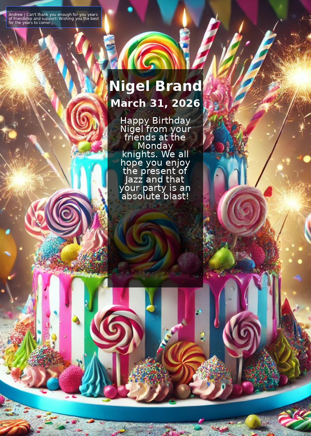 March 27, 2026Can't thank you enough for you years of friendship and support! Wishing you the best for the years to come!
