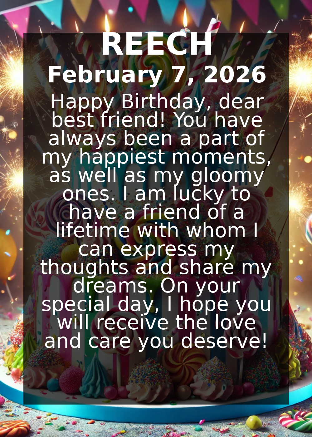 Happy Birthday, dear best friend! You have always been a part of my happiest moments, as well as my gloomy ones. I am lucky to have a friend of a lifetime with whom I can express my thoughts and share my dreams. On your special day, I hope you will receive the love and care you deserve!💋❤🎂🎉🙌