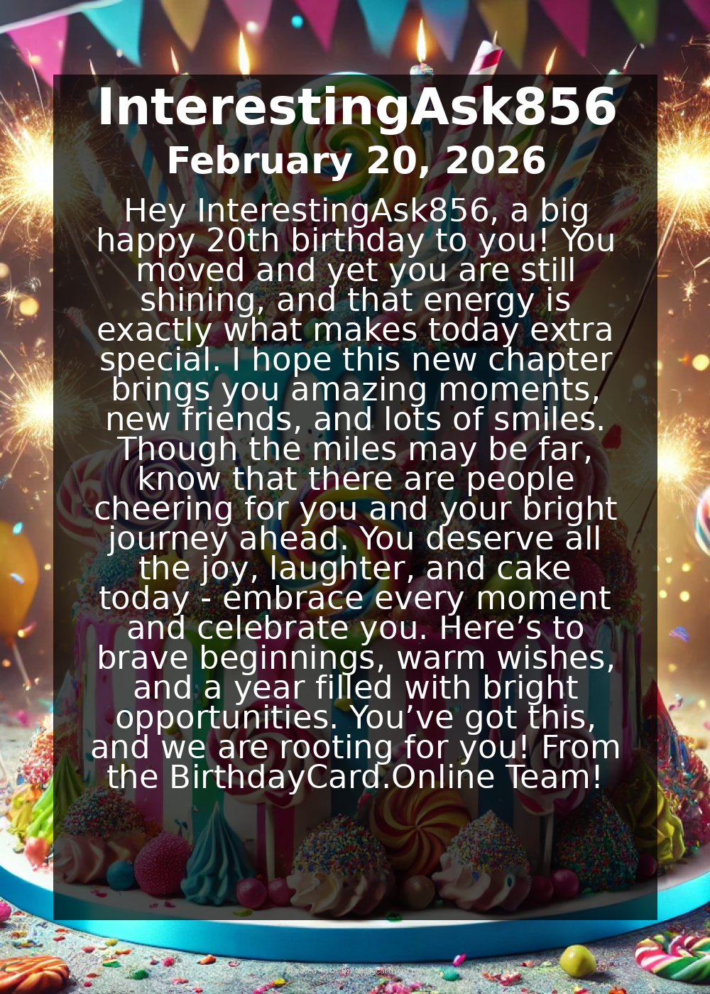 Hey InterestingAsk856, a big happy 20th birthday to you! πŸŽ‰ You moved and yet you are still shining, and that energy is exactly what makes today extra special. I hope this new chapter brings you amazing moments, new friends, and lots of smiles.