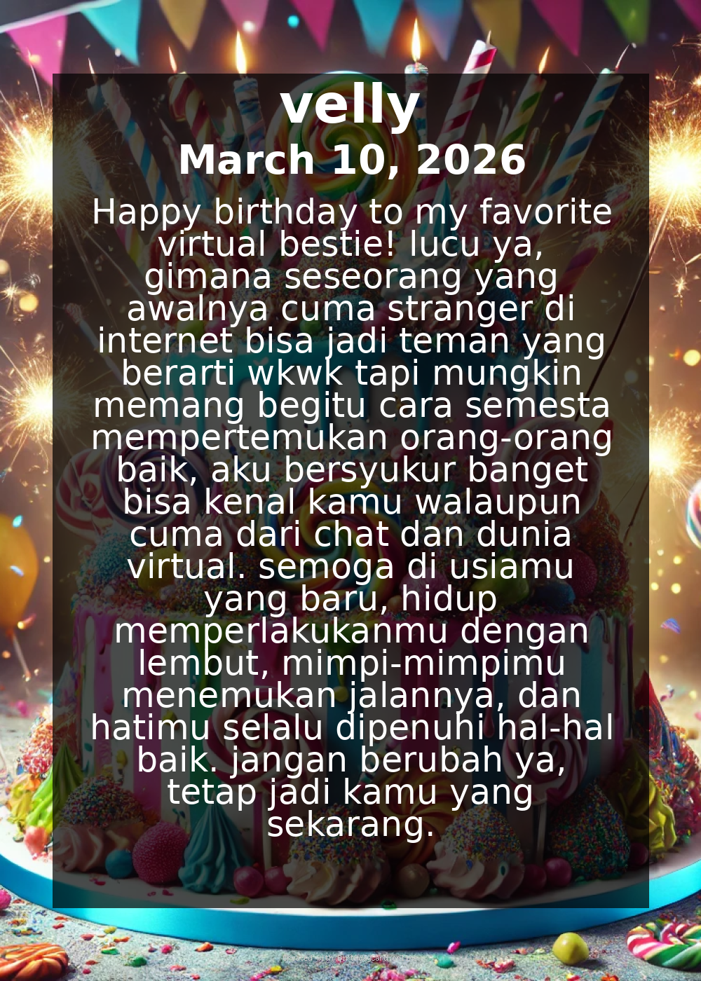 semoga di usiamu yang baru, hidup memperlakukanmu dengan lembut, mimpi-mimpimu menemukan jalannya, dan hatimu selalu dipenuhi hal-hal baik.